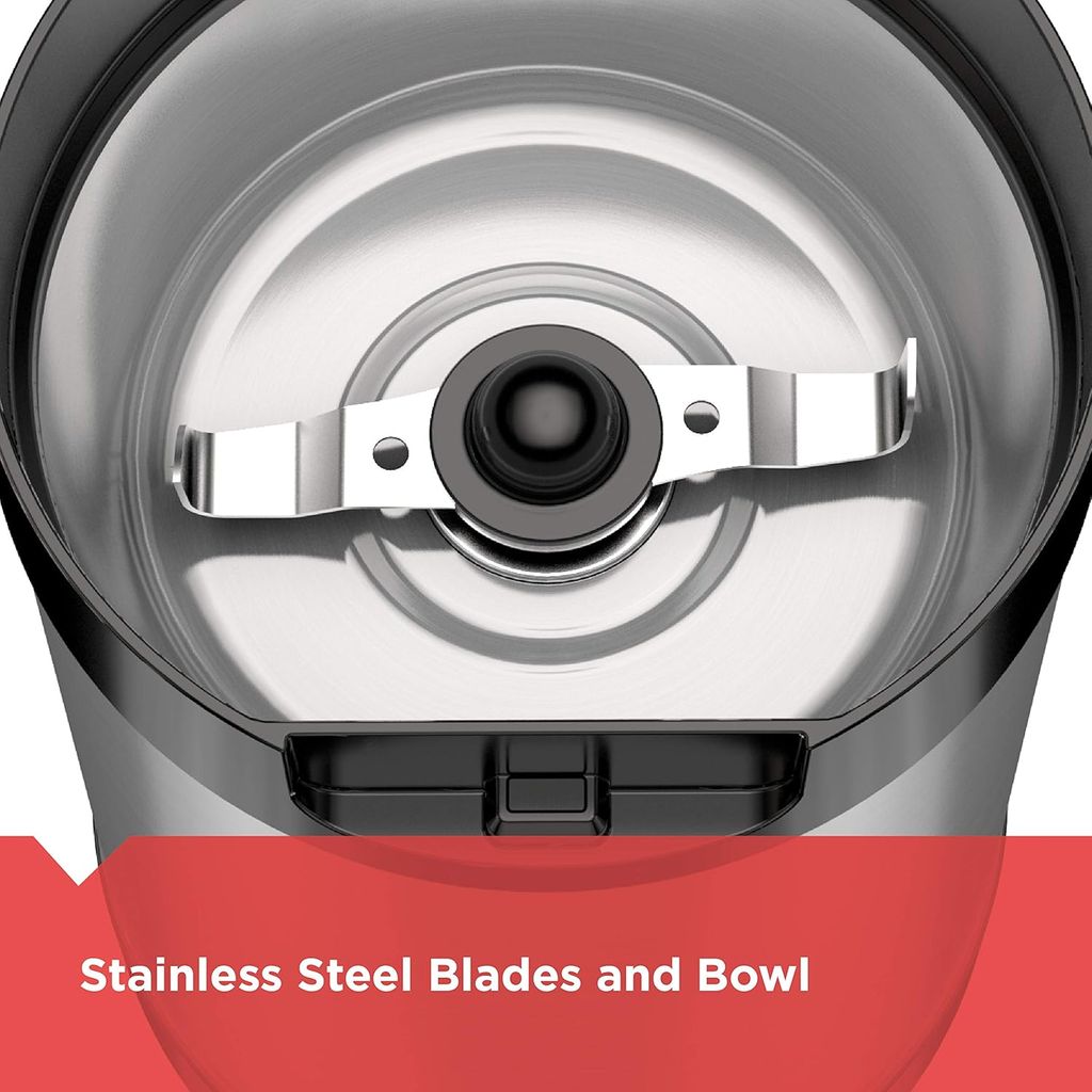 BLACK+DECKER One Touch Coffee Grinder, 2/3 Cup Coffee Bean Capacity, Spice Grinder, One Touch Push-Button Control -150 Watts -Stainless Steel Blades