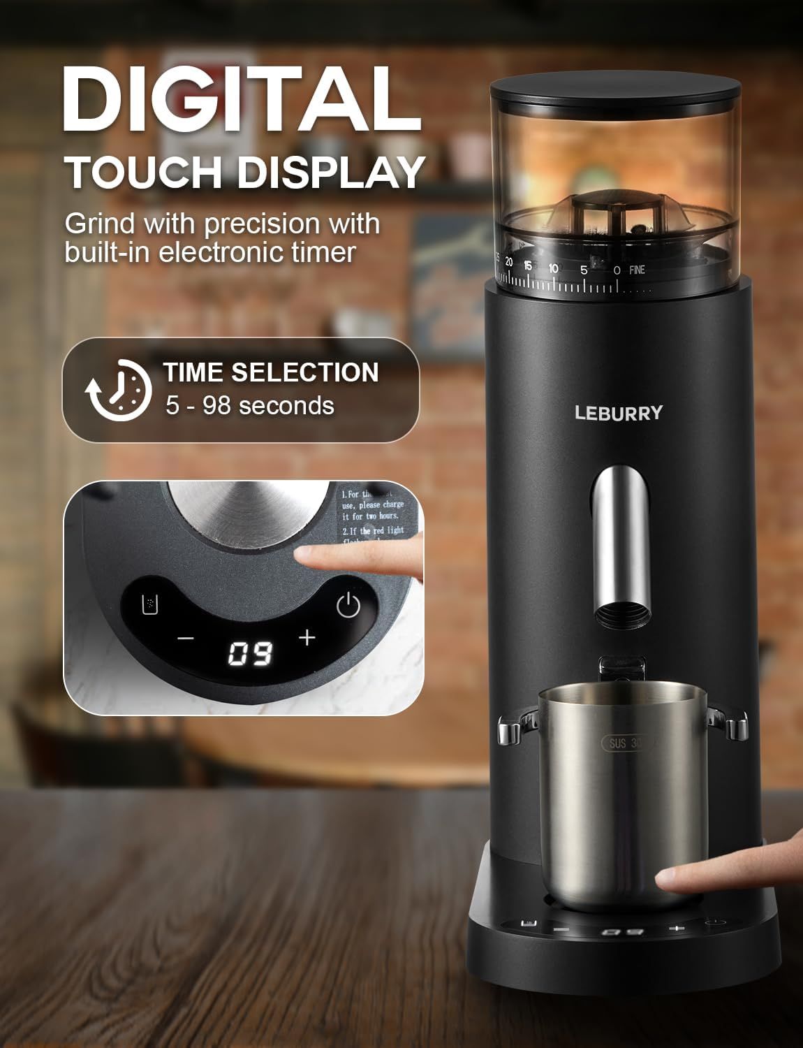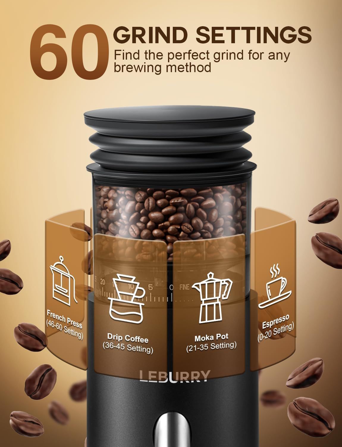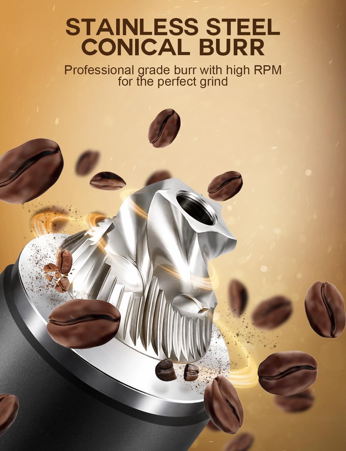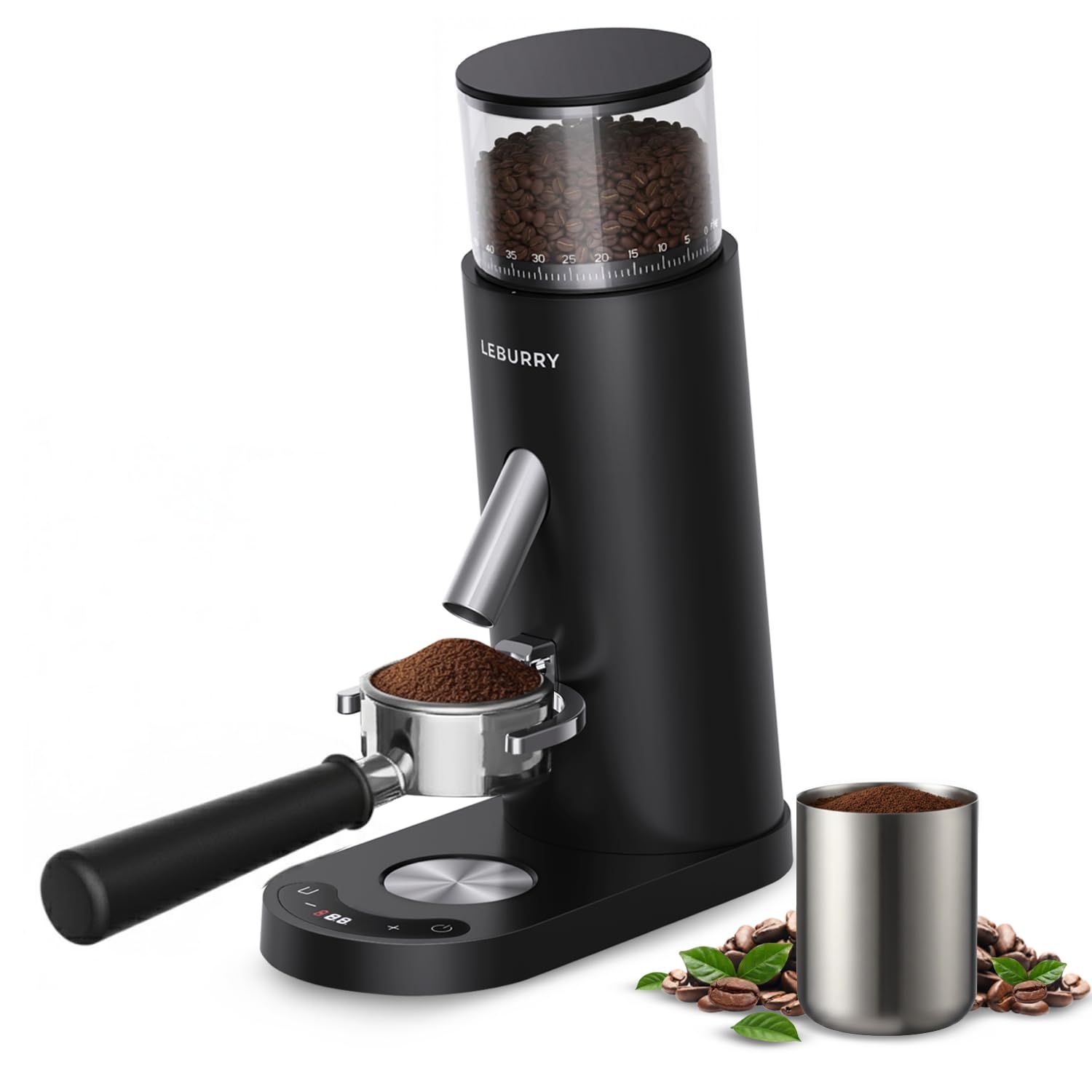 Burr Coffee Grinder – Portable Coffee Bean Grinder with 60 Grind Settings, LCD Timer, 51 & 58mm Portafilter Compatible - Rechargeable Electric Espresso Grinders for Home, Office & Travel