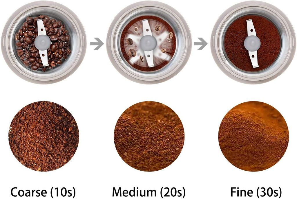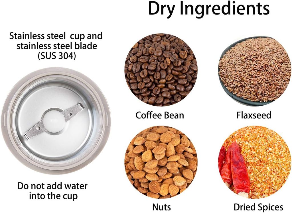 DR MILLS DM-7441W Coffee Grinder Electric, Coffee Bean and Dried Spice Grinder, One Touch Operation, Blade and Cup Made with SUS304 Stainless Steel (White)