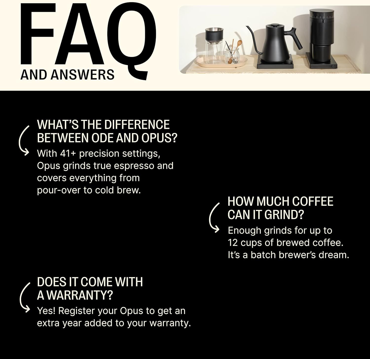 Fellow Opus Conical Burr Coffee Grinder – Electric Espresso Grinder for Home Use, 41 Adjustable Settings for Drip, French Press, Cold Brew & More, 40mm Stainless Steel Burrs, Matte Black