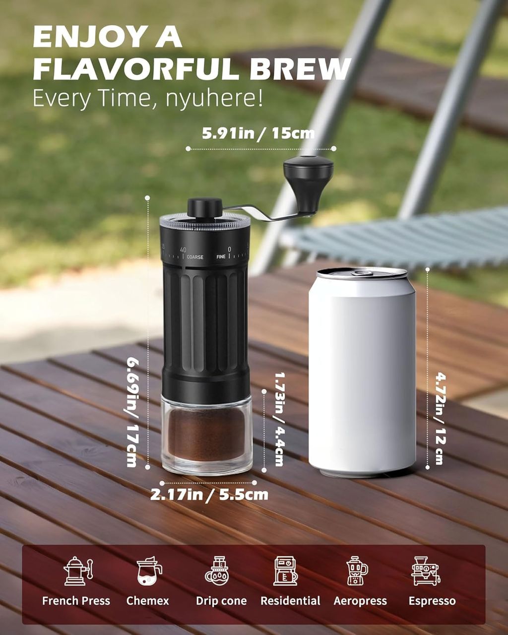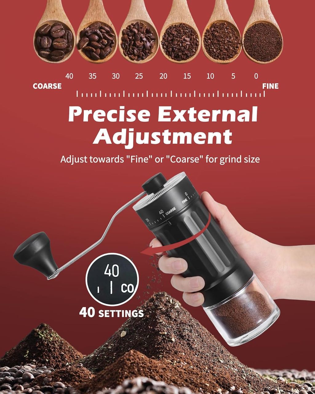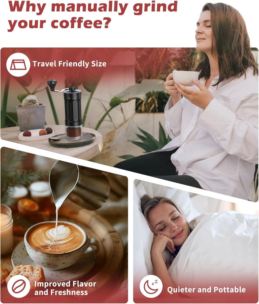 GCCTXC Manual Coffee Grinder with Ceramic Burr Handheld Hand Crank Espresso Grinder for Coarse Drip Fine Pour Over French Press Small Portable for Travel Camping Quiet Adjustable with Grind Settings