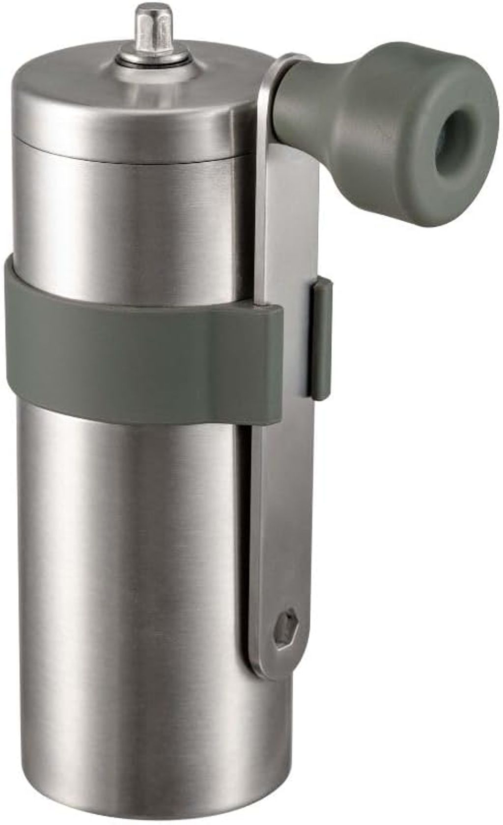 This little grinder is perfect for travel. Its sturdy stainless steel body is small and perfect to pack away. The handle can be detached and stored on the silicone band to make it even more compact. It features a quick adjustment screw for manipulating grind size on the fly. Most of our manual coffee grinders use burrs made of ceramic - conical ceramic burrs transfer less heat and shave coffee beans versus cracking them like blade grinders. This process also provides a more consistent grind that can easily be adjusted and set for repeat use.