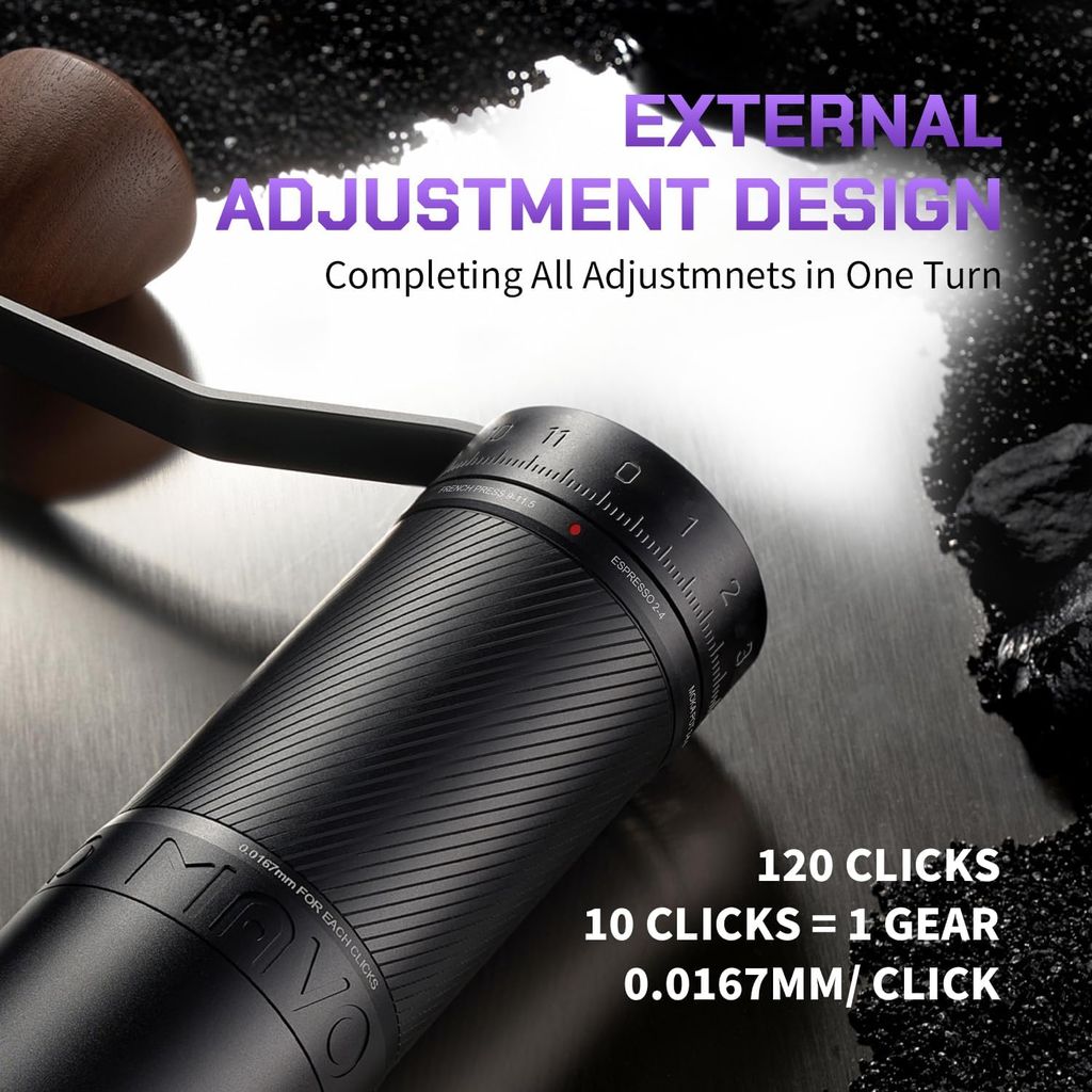 MAVO Manual Coffee Grinder, Phantox Pro Burr Coffee Grinder, Professional 45mm Stainless Steel Grinding Core, Capacity 30g, 120 Clicks Adjustment, Hand Coffee Grinder for Espresso, Pour Over, Black