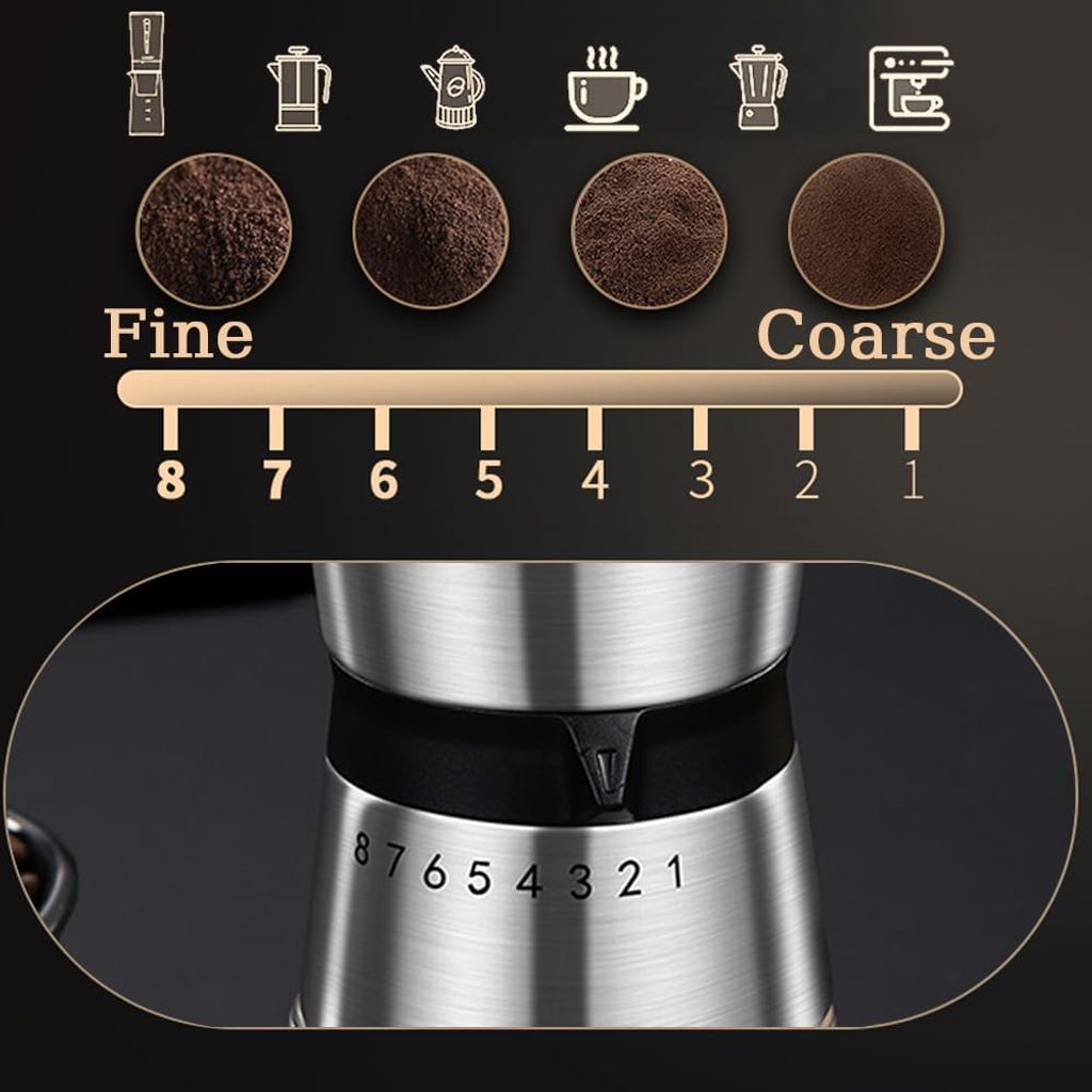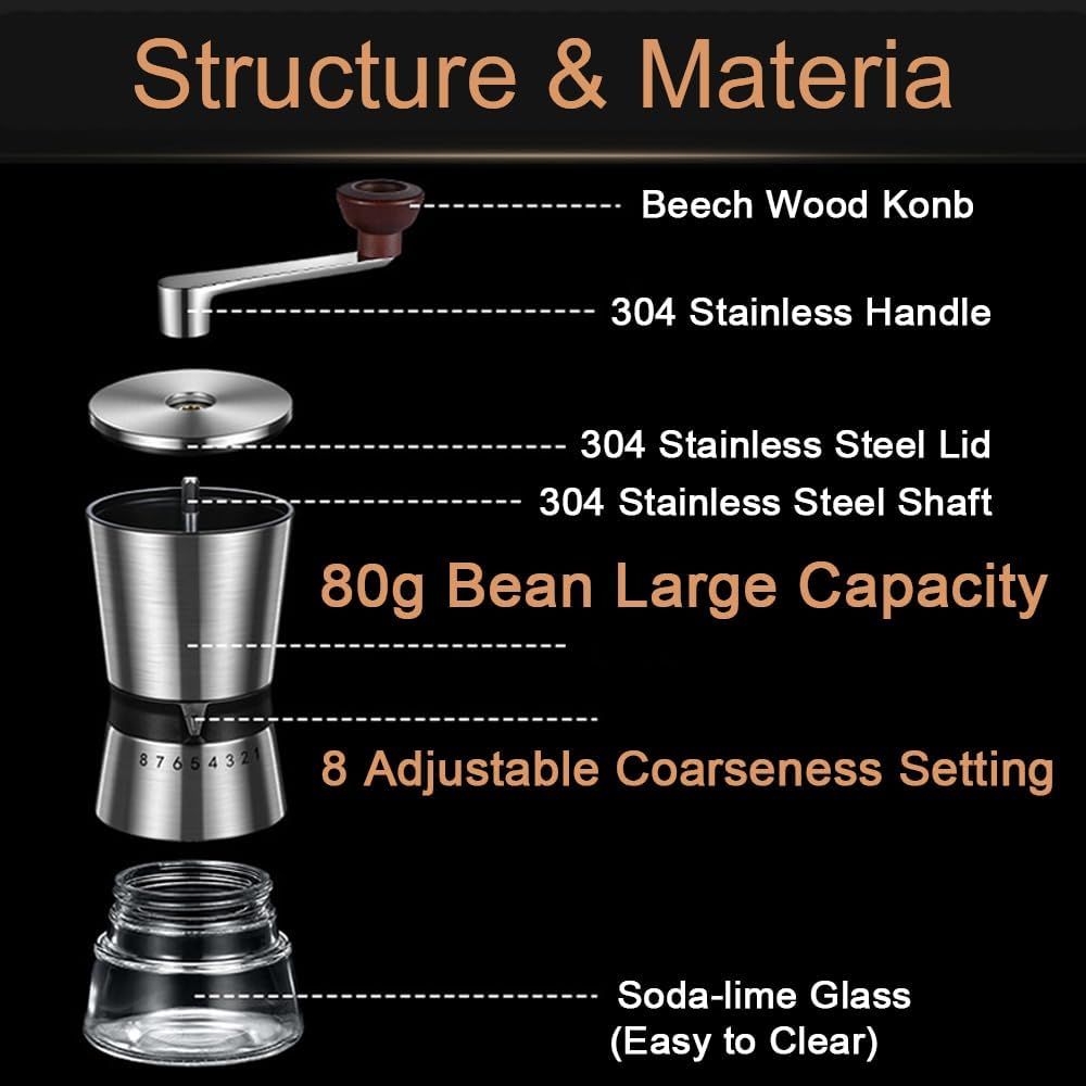Precision Manual Coffee Grinder for Home Use, 8 Adjustable Coarseness Setting,with Ceramic Universal for Travel Camping